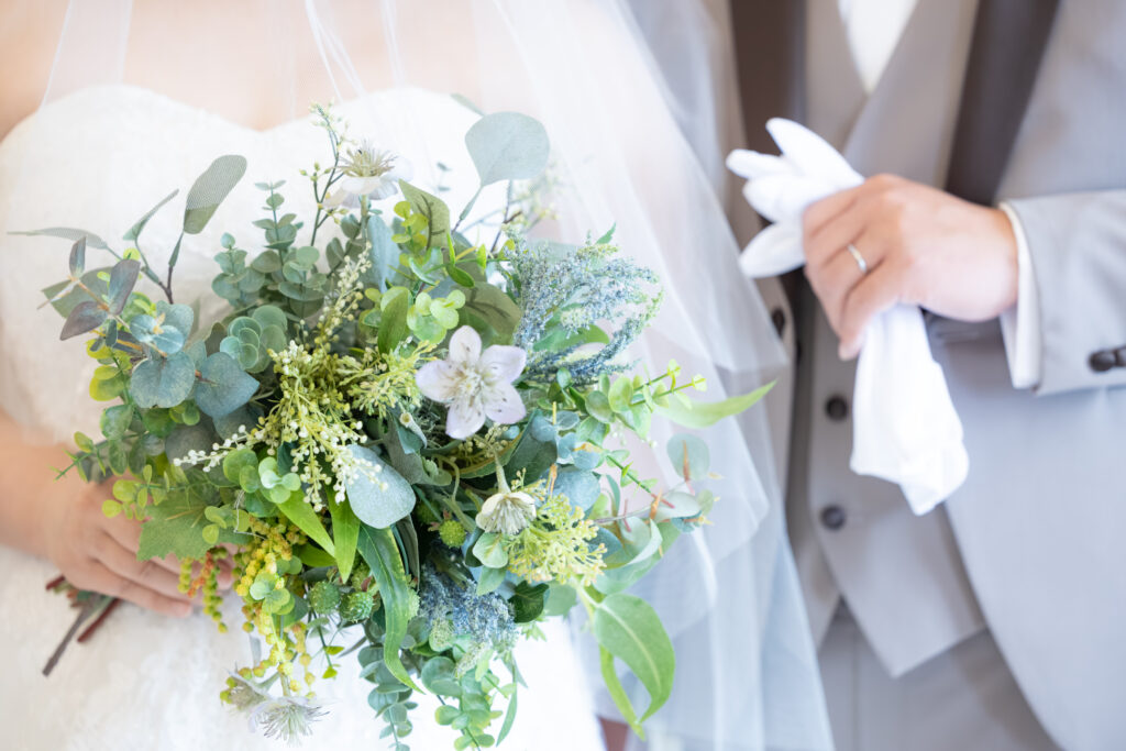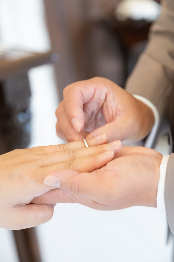 ステンドグラスの柔らかな光が、おふたりの穏やかな表情をより引き立てていました。